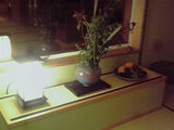 ロビーにススキを飾り、お供え物をしました。。